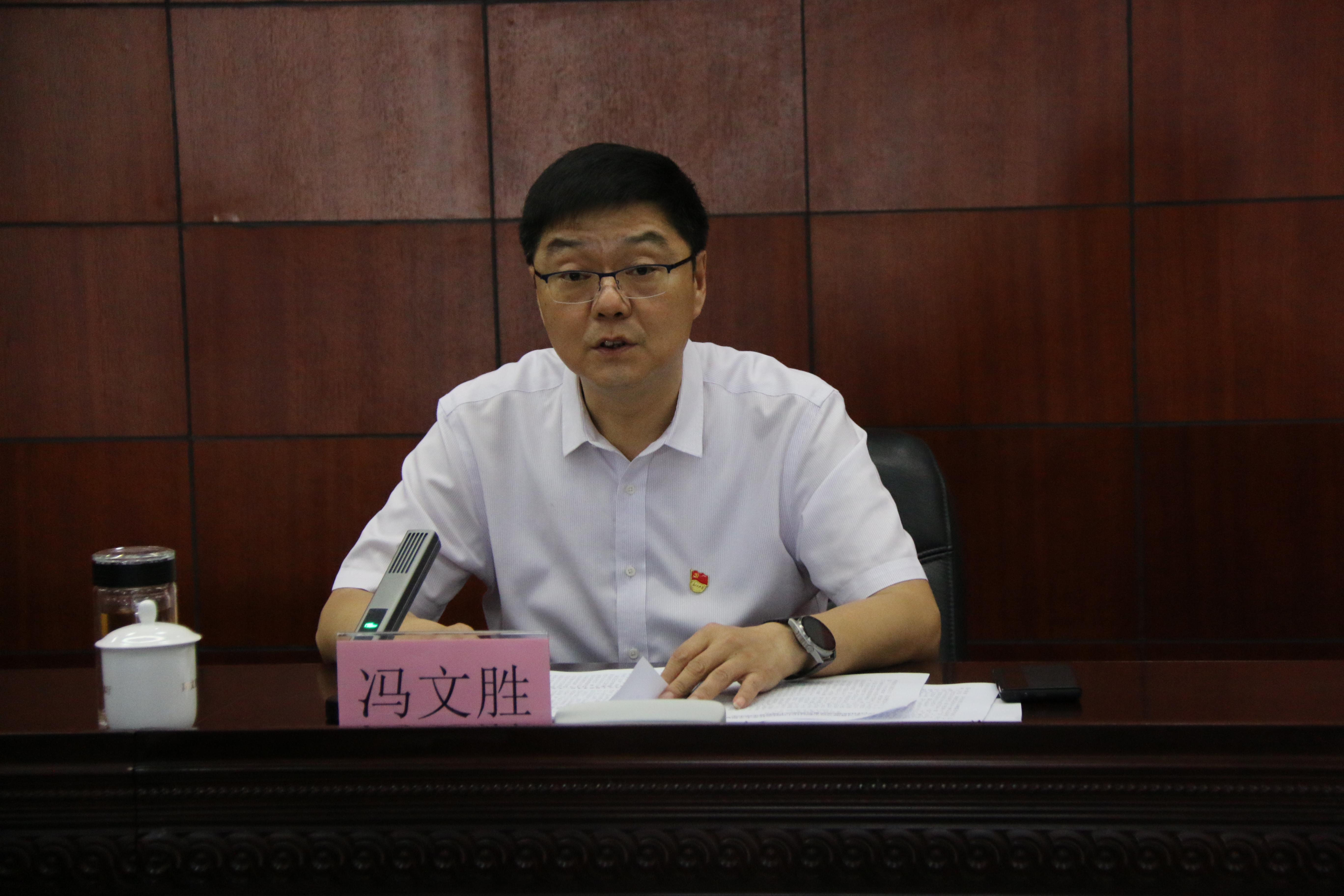 冯文胜指出,要切实把深刻理解开展学习贯彻习近平新时代中国特色社会主义思想主题教育的重大意义、总要求和根本任务内化于心,要从坚定拥护“两个确立”,坚决做到“两个维护”的政治高度,深刻认识开展主题教育的政治意义、理论意义、实践意义,以高度的政治自觉开展好主题教育,切实把思想和行动统一到党中央和省委部署要求上来。